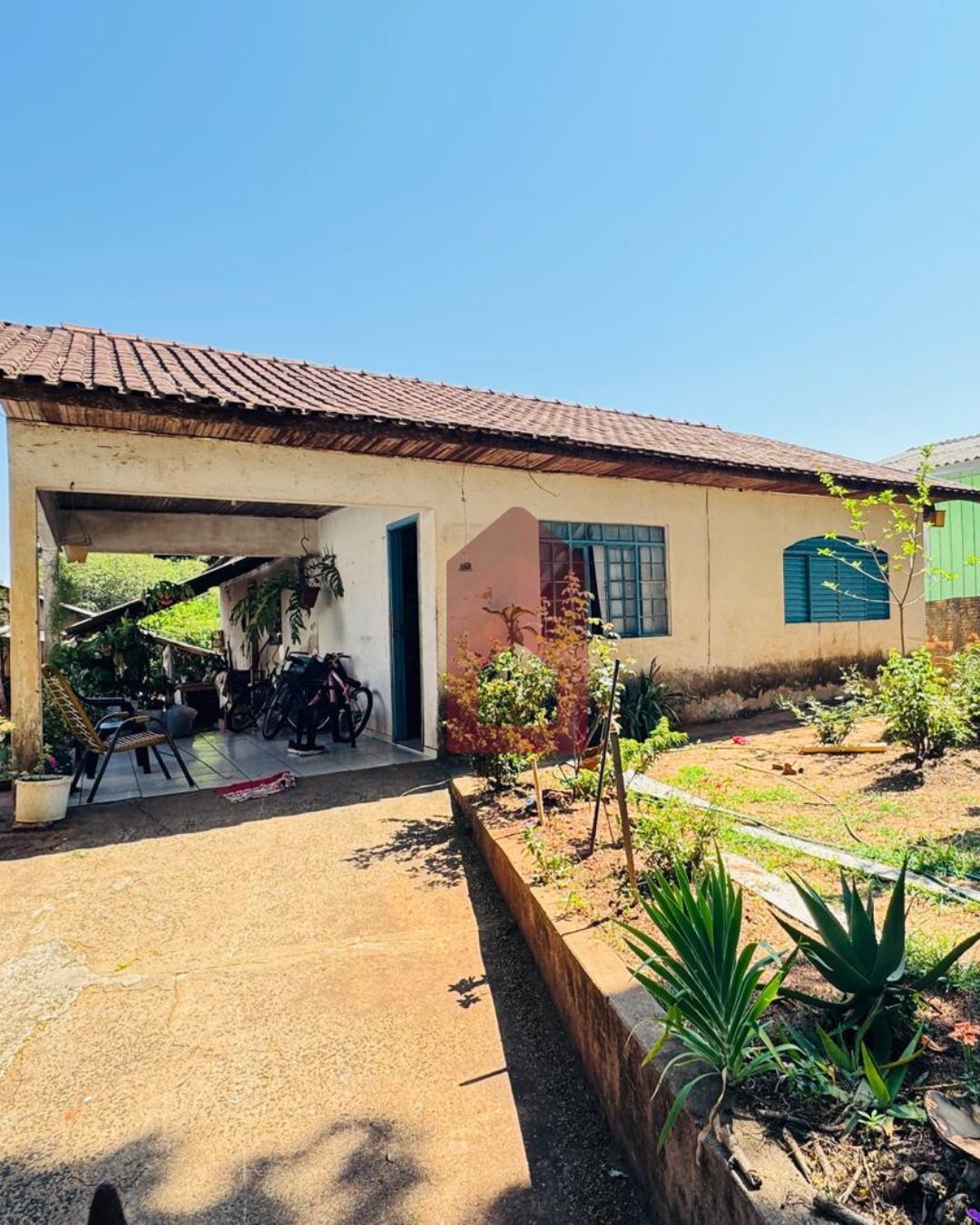 ➡️ Casa de aproximadamente 100m², com 3 quartos, sala, cozinha, banheiro social e garagem.